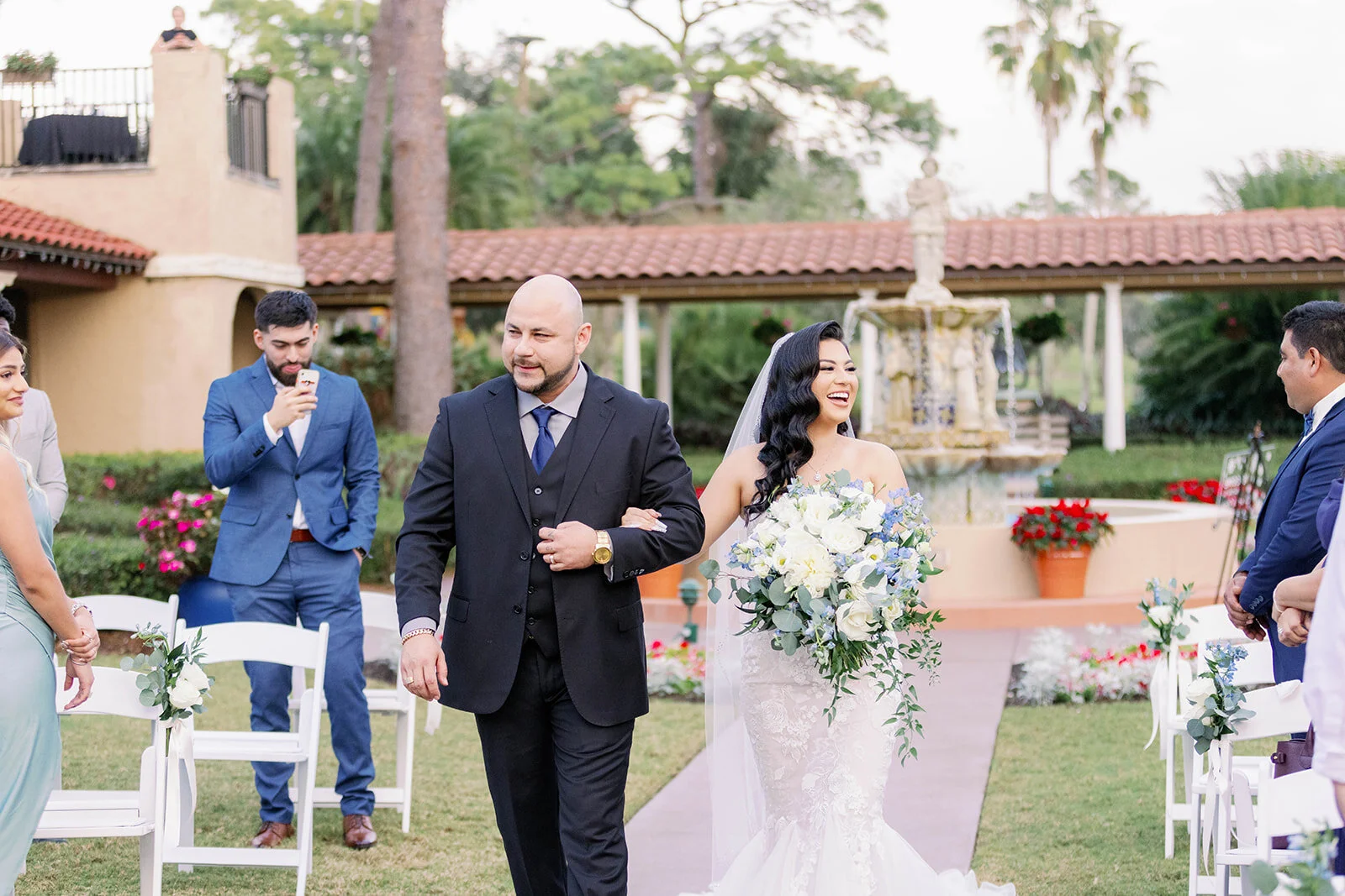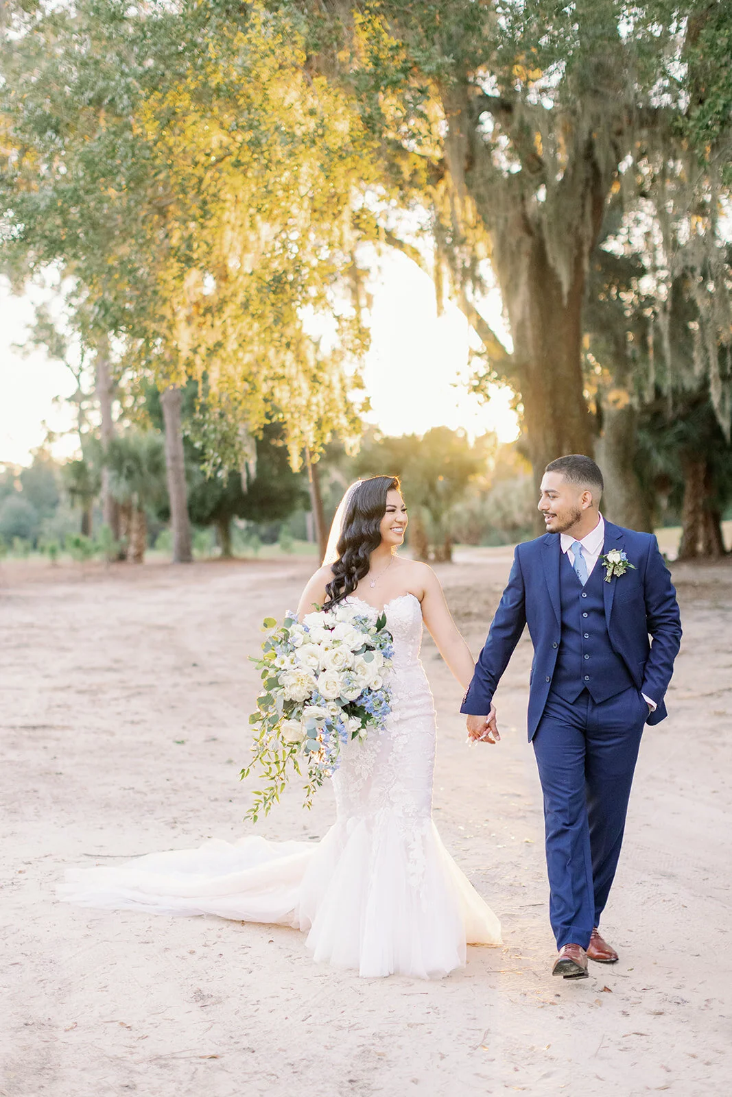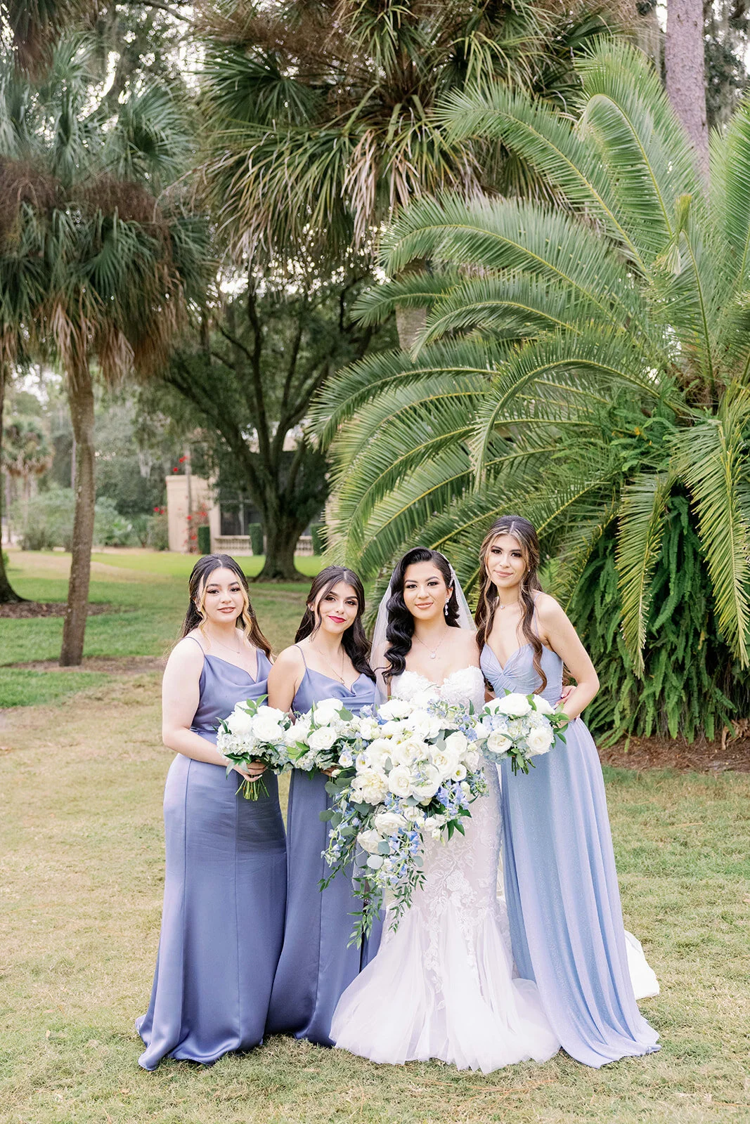 Crystal dreamed of a Winter Fairytale Wedding and she got just that at Mission Inn Resort and Club. Her exact words for her floral inspiration were "Cinderella's Castle in the Winter with ALL the Periwinkle." Blue Delphinium was the perfect color for her. The majority of her floral was winter white and we got hints of that blue delphinium to pull off that vision.